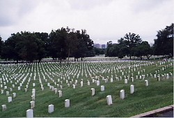 第35代アメリカJ.F.ケネディをはじめとするアメリカの国民的英雄や建国以来の数々の戦争で亡くなった25万人の戦死者とその家族、政治家が埋葬されている国立墓地。広大な敷地の半分は、かっては南北戦争の南軍の将リー将軍の所有地で、墓地を見下ろす丘の上には彼の邸宅だったアーリントンハウスが立つ。緑の芝におおわれた丘には、墓地が整然と並んでいる。丘の上からワシントン市街を望む場所には、ワシントンの都市計画を手掛けたピエール・ランファンが眠っている。