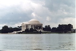 ローマ神殿風の円形建築の内部は白い大理石で造られ、ブロンズ製のジェファーソンの像が立っている。このそばを流れるポトマック川岸には日本から贈られた桜が、毎年みごとな「春」を演出する。