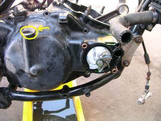白い液体は、クラツチ、キックの穴から水分が入って乳化したオイルのようです。